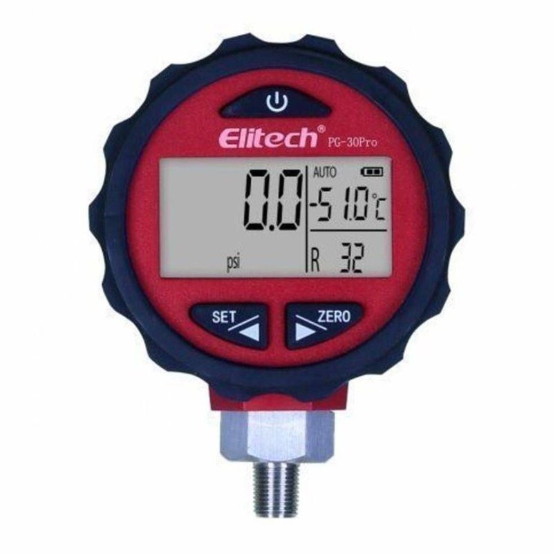 O manômetro digital PG-30Pro é um instrumento profissional indicado para manutenções e instalações em sistemas de refrigeração e ar-condicionado, que permite ao técnico selecionar o Tipo de gás refrigerante aplicado no equipamento, e verificar as temperaturas comparadas com a tabela PxT (pressão x temperatura). Por seu display de fundo iluminado e suas três teclas de configuração, permite a seleção de mais de 80 tipos de gases refrigerantes