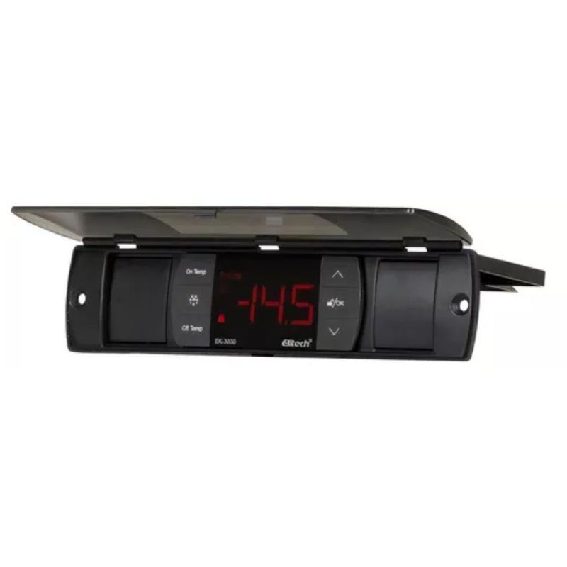 Compatível com controladores de temperatura padrão da Elitech e outros que possuírem dimensão máxima de 7cm de largura x 3cm de altura