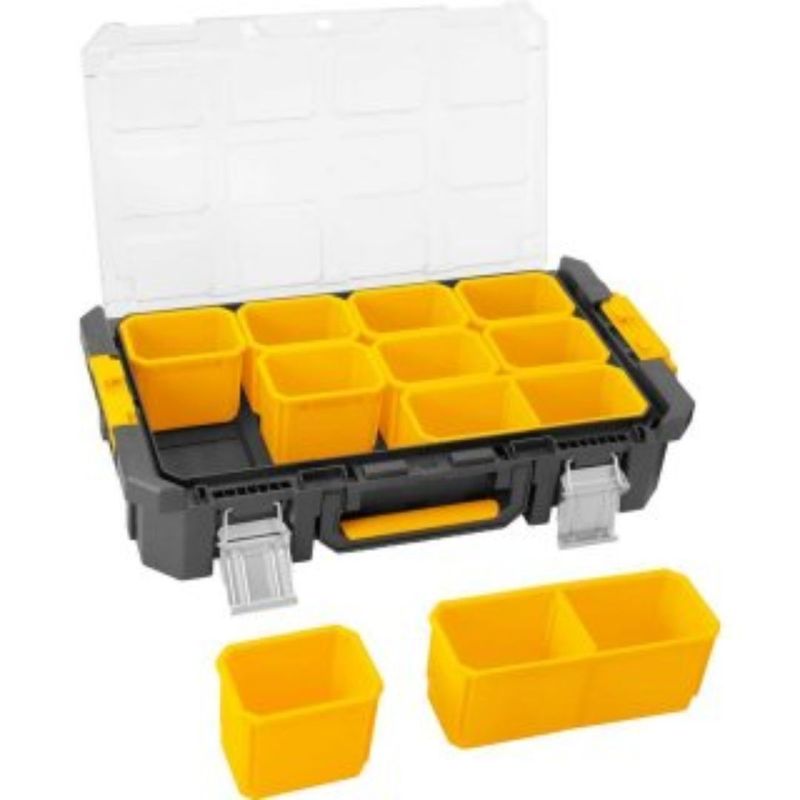 Seu sistema de engate rápido facilita o acoplamento dos módulos, enquanto as rodas reforçadas e a alça retrátil garantem mobilidade mesmo com até 40 kg de carga. Fabricada em material resistente, protege suas ferramentas contra impactos e condições de trabalho mais exigentes.
